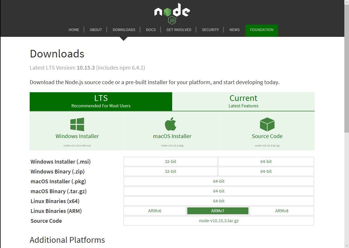 wget https://nodejs.org/dist/v10.15.3/node-v10.15.3-linux-armv7l.tar.xz