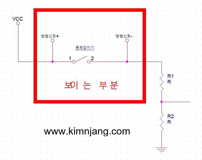 ○ 동체 센서 회로와 동일한 형태이며 방범 신호의 +, - 가 반대로 되어있음